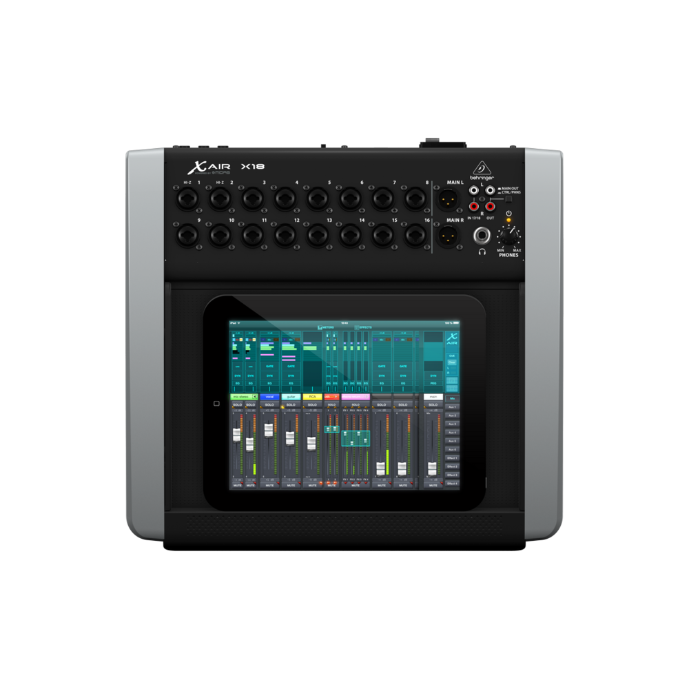 Behringer X18 – 18-канальный, 12-bus цифровой микшер для iPad и других планшетов. - 16 полностью программируемых микрофонных предусилителей MIDAS. - Интегрированный модуль Wi-Fi для прямого управления - отсутствие потребности во внешних маршрутизаторах или любых специализированных коннекторах. Управлять работой Behringer X18 можно с помощью бесплатных приложений для IOS и PC. - 18 x18 каналов, двунаправленный интерфейс USB для прямой записи на iPad и т.д. - FX характеризуется 4 стерео FX слотами включая высоко производительные симуляторы Lexicon 480L и PCM70, MT250 и Quantec QRS - Real Time Analyzer (RTA) с 100 группами для всех каналов и bus EQ.