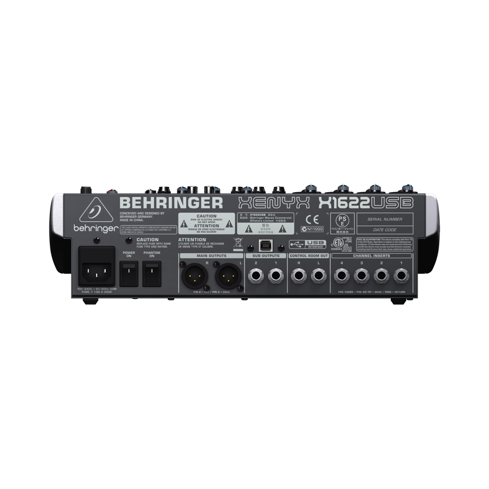 Behringer Xenyx X1622USB-EU Пульт микшерный компактный малошумящий, 4 моновхода, 4 стереовхода, 2 AUX-шины, процессор эффектов, внешний USB-интерфейс, встроенный импульсный блок питания, energyXT2.5