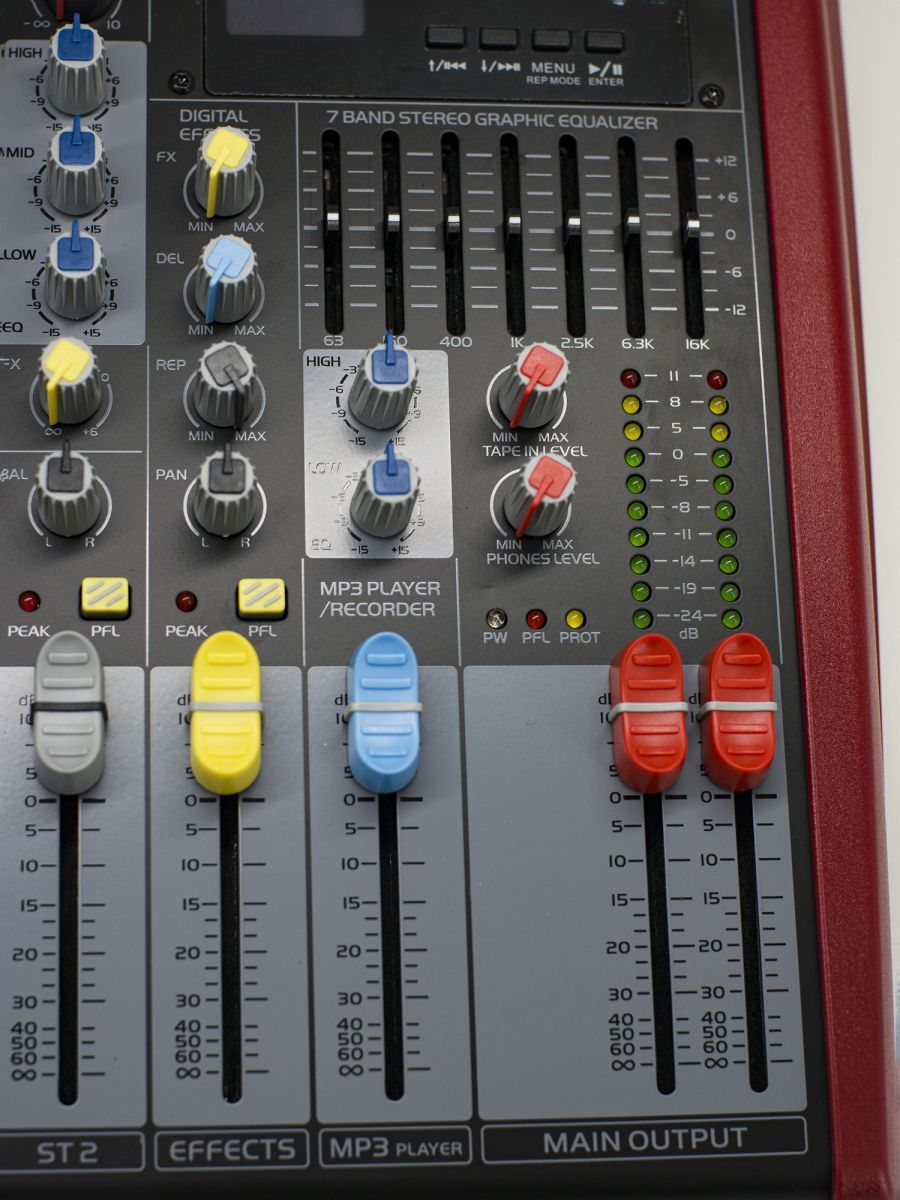 BG ST-122 – это профессиональный аналоговый микшерный пульт. Микшер обеспечивает прекрасное решение для легкости и удобства подключений. Модель создана в соответствии со стандартами первоклассных консолей, благодаря чему вы можете с уверенностью рассчитывать на надежность в эксплуатации и прекрасные акустические характеристики. Основные характеристики: – корпус на 12 каналов – LR main mix – функция записи – 2 group стереофонических входа – 3-полосный эквалайзер – измерители Channel и master – фейдеры с защитой от пыли – пиковый индикатор в каждом канале – балансные XLR выходы с электропитанием +26 dBu – 7-полосный графический эквалайзер – процессор эффектов – металлические джеки, позолоченные разъемы XLR – внешний адаптер питания
