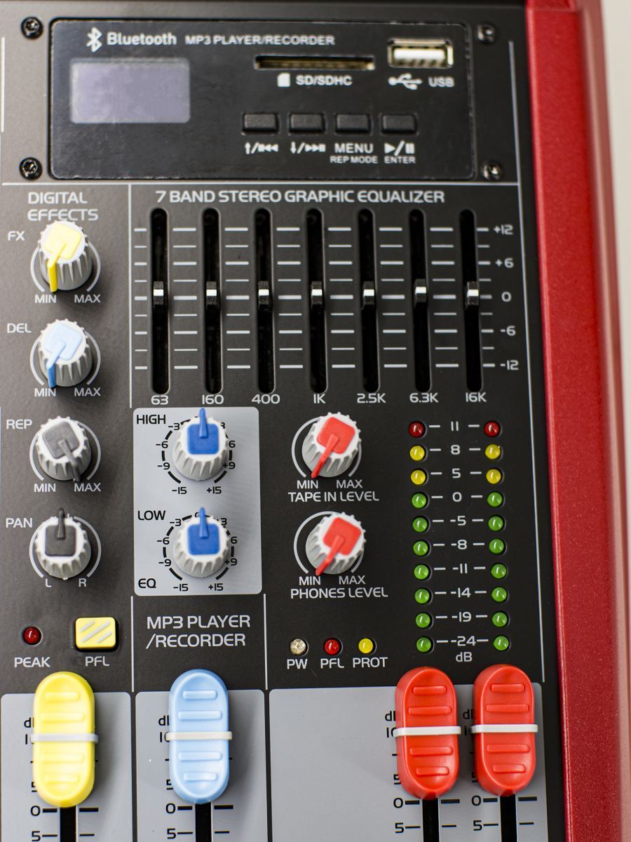 BG ST-122 Пульт микшерный, 10 моно, 2 стерео, USB/SD MP3 плеер, процессор эффектов, 7 полосный эквалайзер