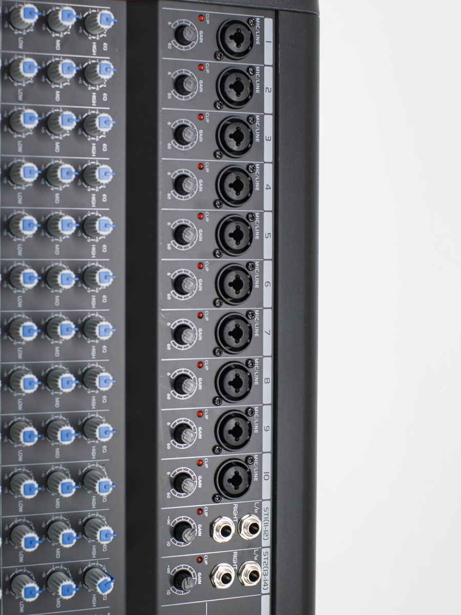 BG T122-FX представляет собой компактный 14-канальный микшерный пульт для живых концертов и студийного применения. BG – это качественное и доступное по цене профессиональное звуковое и трансляционное оборудование. Продукция бренда BG станет идеальным вариантом для баров, ресторанов и конференц-залов. Строжайший контроль технологического процесса обеспечивает высококачественное звучание и безупречную надежность оборудования. Особенности модели: – 14 каналов – LR основной микс – 2 Aux отправления – запись – 2 группы входа стереоканала – 60-миллиметровые пыленепроницаемые фейдеры – 2-трековый мониторинг и воспроизведение в LR – наушники и выходы локального монитора – выделенные стерео, высоковольтные мониторы – сбалансированные XLR-выходы с возможностью привода + 26 дБн – сверхмалошумящий микшерный усилитель – 7-полосный графический эквалайзер – 16-режимный процессор с регулируемыми параметрами DSP – металлические гнезда, позолоченные XLR, герметичные потенциометры и переключатели – встроенный источник питания SMPS Микшерный пульт BG T122-FX обеспечивает высочайшую надежность и наилучшие звуковые характеристики.