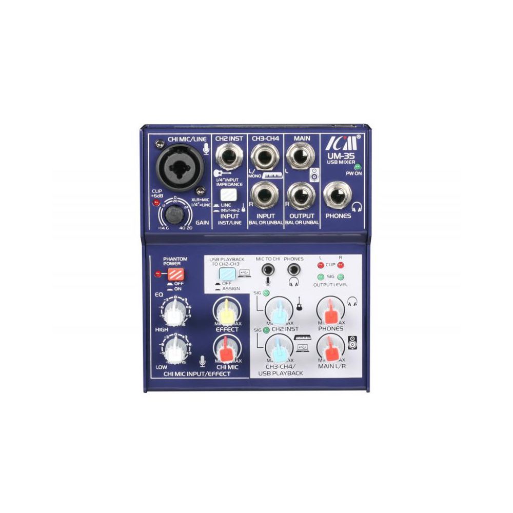 BG UM-35 представляет собой компактный микшерный пульт по привлекательной цене. BG – это качественное и доступное по цене профессиональное звуковое и трансляционное оборудование. Продукция бренда BG станет идеальным вариантом для баров, ресторанов и конференц-залов. Строжайший контроль технологического процесса обеспечивает высококачественное звучание и безупречную надежность оборудования. Особенности модели: – 2 монофонических входа – 1 стереофонический вход – процессор эффектов – питание через USB-интерфейс – совместимость с USB Audio Class 2.0 Компактный дизайн позволяет легко транспортировать консоль. Микшер отличается доступными настройками и удобным интерфейсом. Питание BG UM-35 происходит через USB-интерфейс. BG UM-35 – это недорогой и удобный в работе микшерный пульт, который станет отличным вариантом для аудиостудий и конференц-залов.