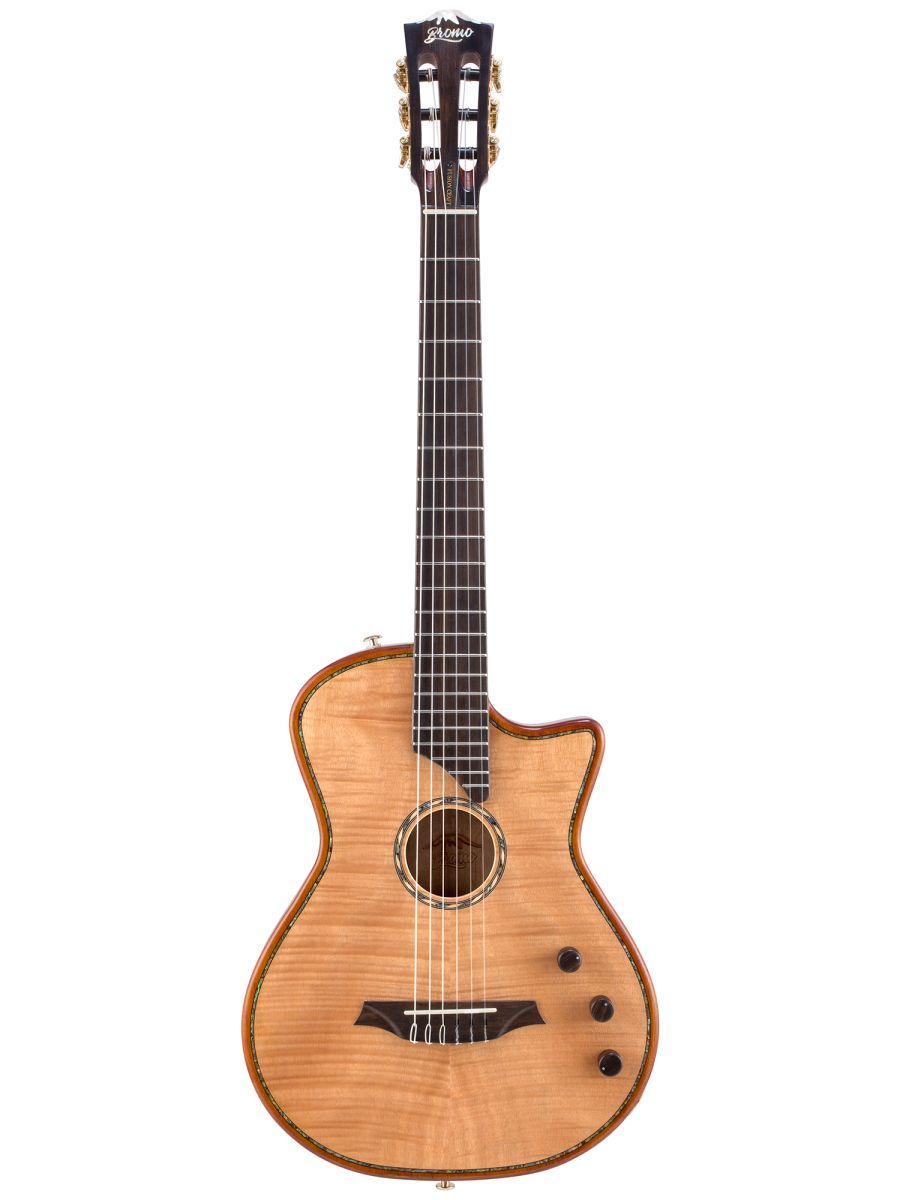 Bromo BEN2C Гитара полуакустическая с нейлоновыми струнами, корпус: махагони, верхняя дека: ель с шпоном из огненного окуме класса 5A, гриф: махагони, накладка грифа: макассарский эбен, двухсторонний анкер, колки: винтажные, «Mt. Bromo» позолоченные, электроника: пьезодатчик + 3-позиционный звукосниматель под струнодержателем, глянцевый лак, цвет: Natural, в утепленном жестком кейсе