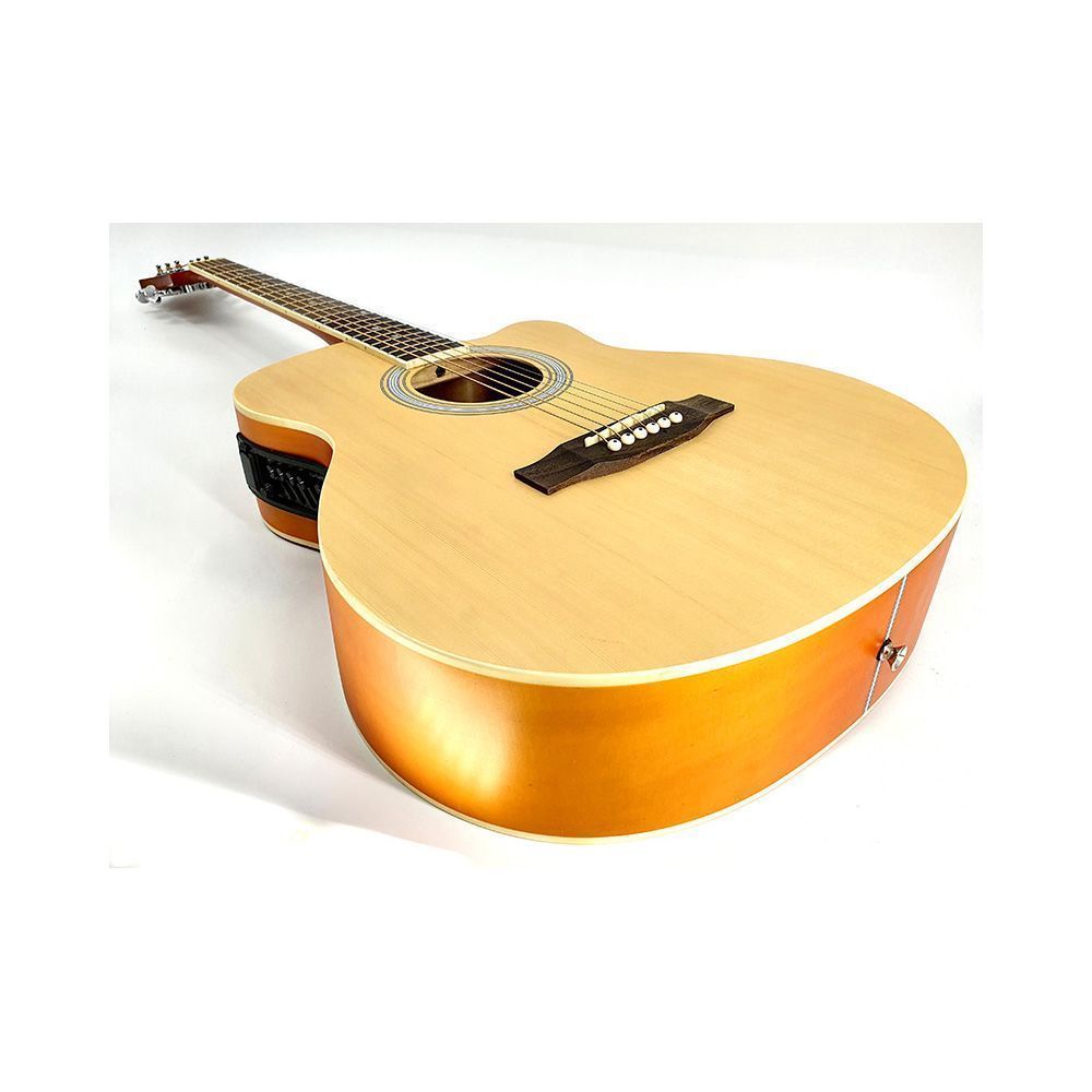 HS-4040CE N – красивая и качественная электроакустическая гитара с вырезом. Верхняя дека инструмента изготовлена из сапеле, древесной породы по свойствам схожим с красным деревом, благодаря чему звук приобретает глубину и мягкость. Нижняя дека из липы отвечает за яркость основного тона и средних частот. Гриф из махагони снабжен прочной палисандровой накладкой. Натуральное покрытие деки понравится всем любителям классики. Натуральное лаковое покрытие корпуса обеспечивает привлекательный внешний вид и положительно влияет на звуковые характеристики гитары. Caravan – это недорогие акустические и электроакустические гитары с качественным звучанием. За все время существования бренд Caravan заработал себе безупречную репутацию и прочно укрепился в нише акустических гитар. Caravan HS-4040CE N станет отличным вариантом для обучения музыке и домашнего музицирования.