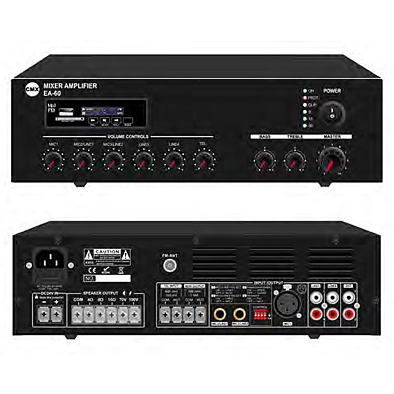 CMX Audio EA-60 Микшер-усилитель 60 Вт, встроенный Mp3 плеер USB и SD, FM тюнер, 3 Mic, 2 Aux, 70V/100V/4-16ohm