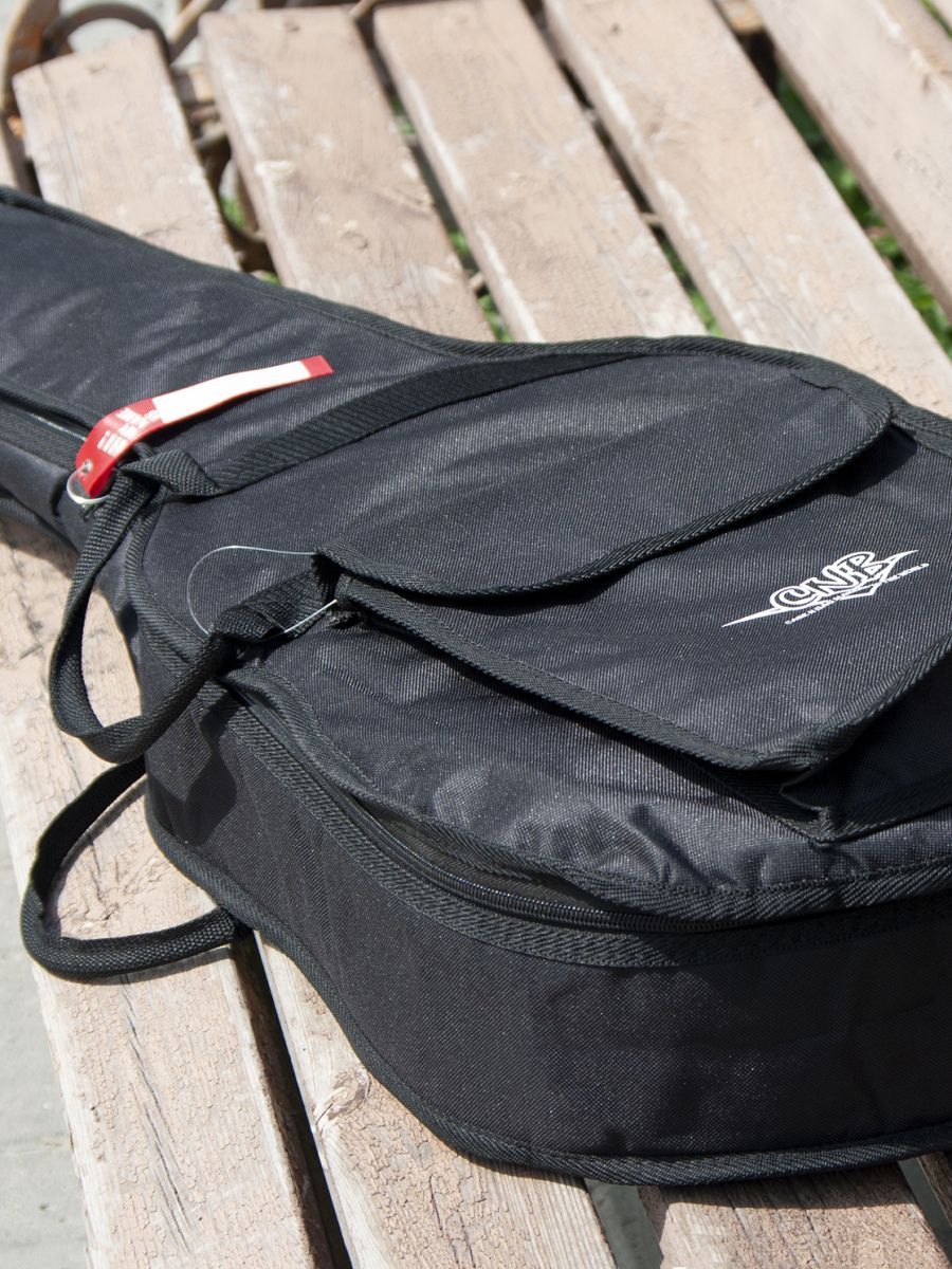 CNB CB400 3/4 – это стильный и качественный чехол для классической гитары 3/4. Главное назначение модели – оберегать инструмент от внешних воздействий окружающей среды, которые негативно сказываются как на внешнем виде гитары, так и на ее звучании. Чехол изготовлен из водонепроницаемого нейлона с плотностью 600 D. Защитное уплотнение толщиной 7 мм предотвращает появление царапин и потертостей на инструменте. Чехол закрывается на прочную молнию с крепкими зипперами. Модель имеет большой наружный карман для хранения нот и гитарных аксессуаров. Заплечный ремень позволяет с удобством переносить гитару за спиной. Для транспортировки инструмента в горизонтальном положении имеются две прочные боковые ручки. Модель CNB CB400 3/4 выполнена в черном цвете, однако классический дизайн прекрасно дополняет логотип компании, расположенный на кармане. Чехол CNB CB400 3/4 создан не только для надежной защиты инструмента, но и для вашего комфорта.
