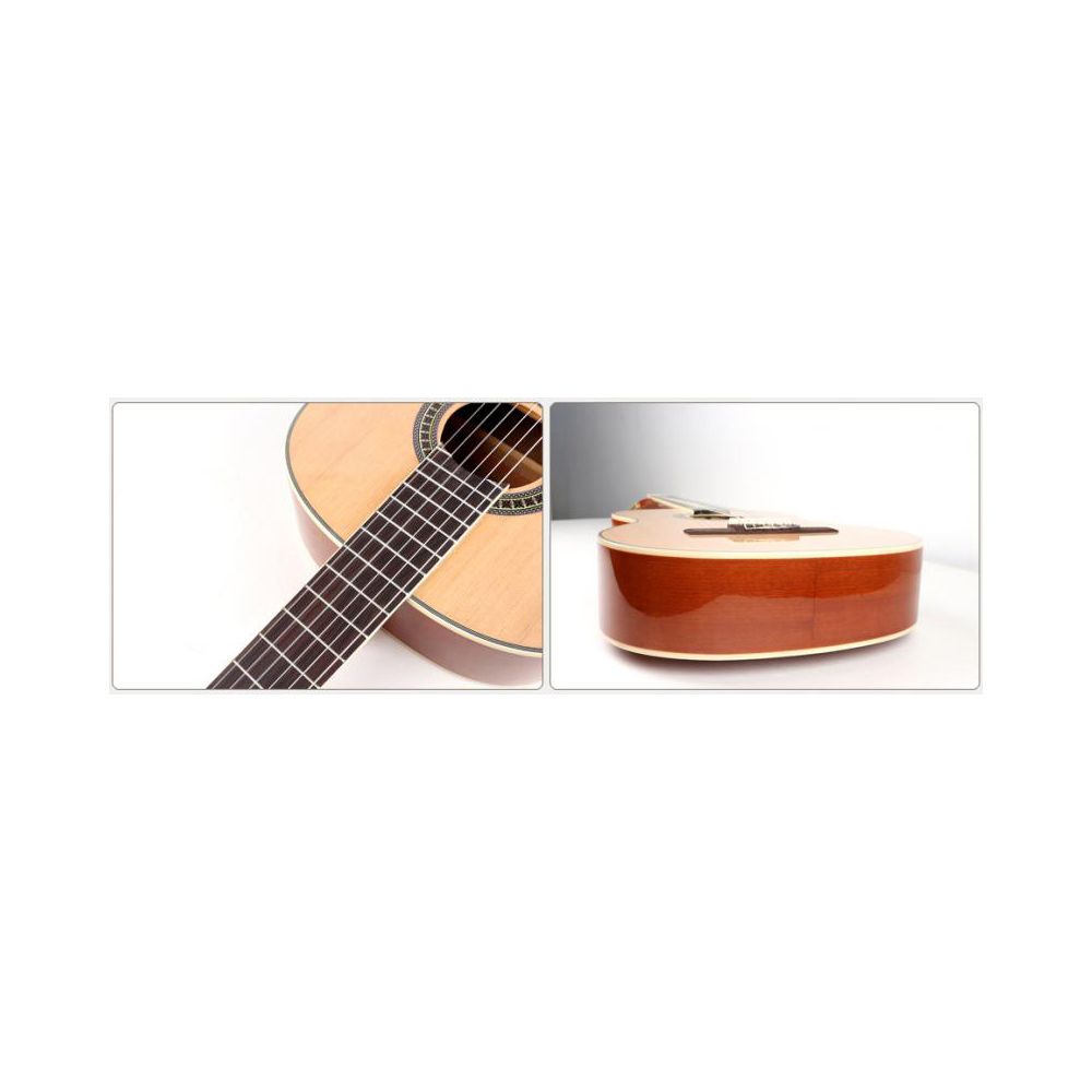 Верхняя дека: ель Нижняя дека и обечайка: тополь Гриф / накладка грифа: махагони / палисандр Цвет: натуральный Вес брутто, кг: 2.4 Длина, см: 100 Ширина, см: 40 Высота, см: 10