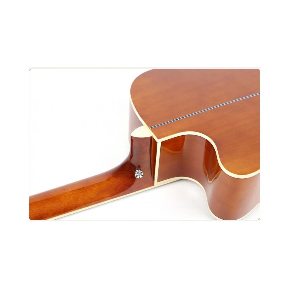 Deviser L-706 N – это качественная акустическая гитара с вырезом, которая отличается хорошими звуковыми характеристиками, привлекательным дизайном и доступной ценой. Верхняя дека, изготовленная из ели, обеспечивает чистое и звонкое звучание, что очень важно для развития музыкального слуха начинающего гитариста. Нижняя дека и обечайка из тополя дает универсальные средние частоты. Гриф выполнен из махагони, материал накладки – палисандр. Вырез обеспечивает удобный доступ к верхним ладам. Гитара выполнена в натуральном цвете. Deviser L-706 N станет прекрасным вариантом как для начинающих музыкантов, так и для более опытных исполнителей.