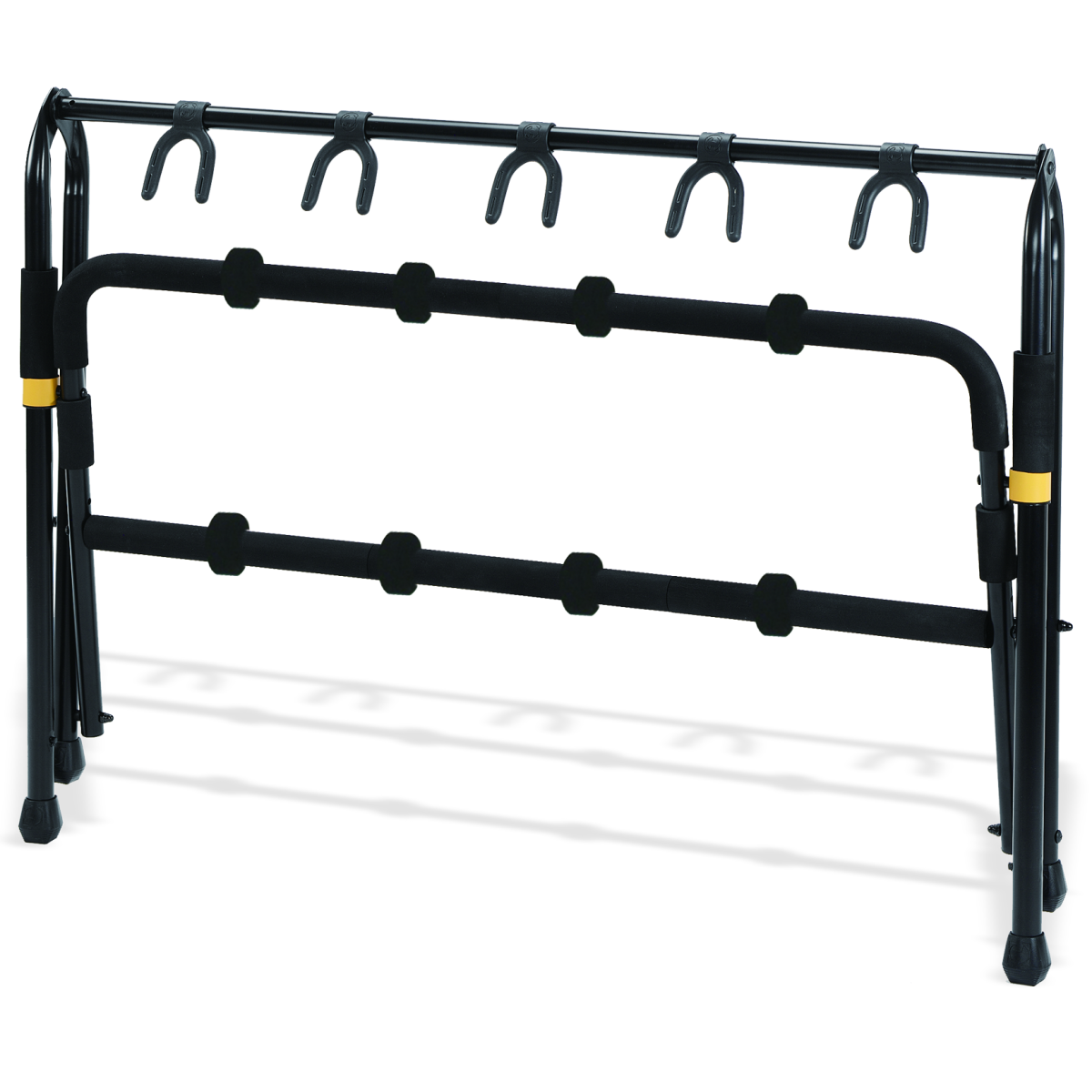 Стенд рассчитан на 5 гитар. Подходит для размещения акустических, электрических и бас гитар. Занимает мало места, легко разбирается и удобен в транспортировке. Специальное прорезиненное покрытие предотвращает от повреждений корпуса гитар. Hercules GS525B — это надежное решение для профессионального размещения гитар, сочетающее в себе функциональность и защиту инструментов.