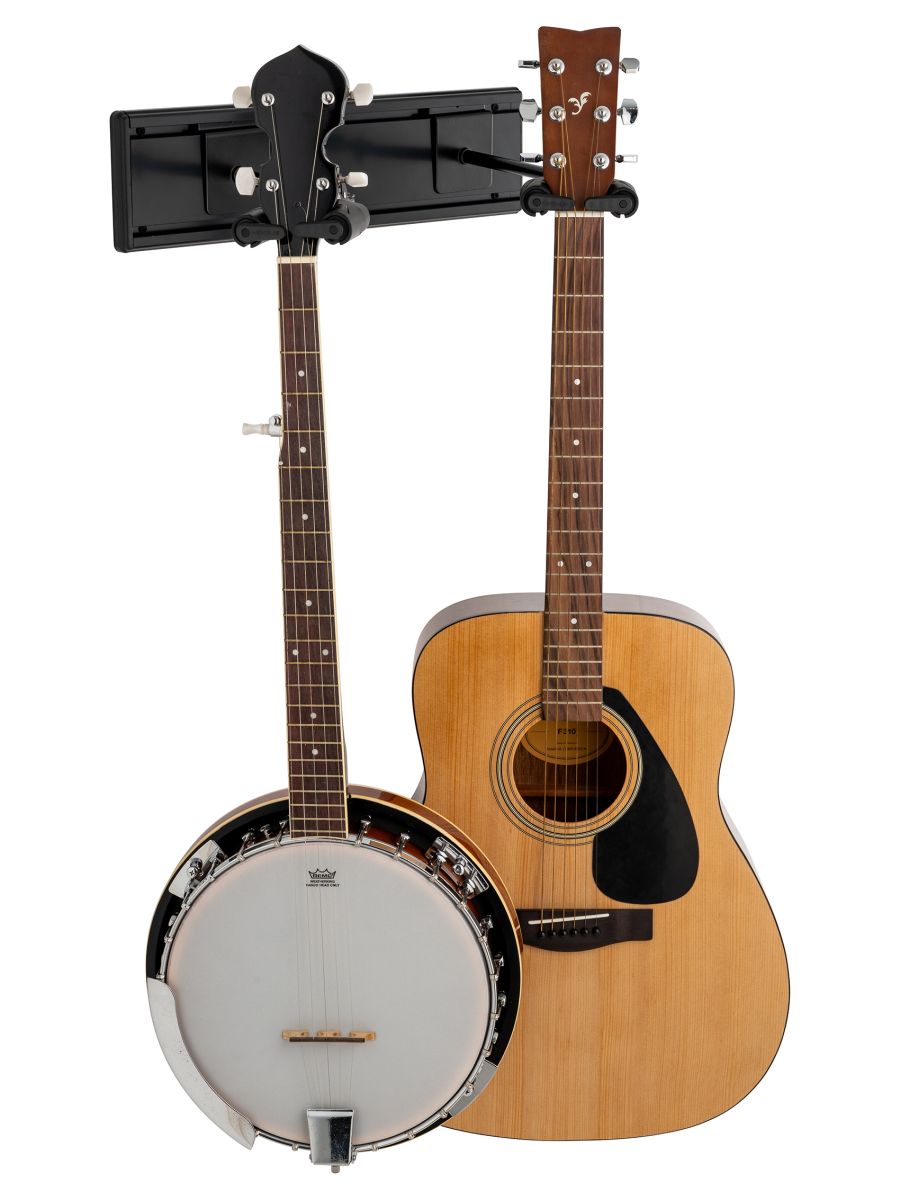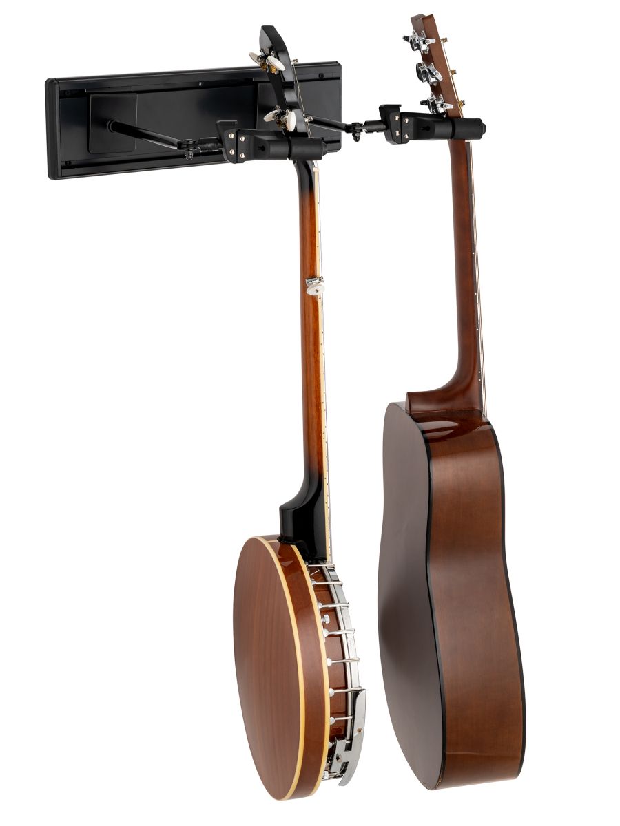 Hercules GSP402SB - настенная панель с крючками для двух гитар разработана для музыкантов, которым требуется надежное и удобное решение для хранения гитар. Она оснащена двумя поворотными крючками AGS Yoke с автоповоротом, которые надежно фиксируют инструменты. Крючки регулируются по углу наклона и подходят для грифа шириной 40–52 мм. Конструкция панели позволяет расширять систему хранения, а регулируемое расстояние между крючками делает её подходящей для инструментов разных размеров, обеспечивая оптимальную защиту и демонстрацию ваших гитар. В комплект входят настенная панель и два настенных крючка GSP40SB Plus с длинными ручками и адаптерами N.I.N.A. Пользователи могут легко добавлять новые наборы по мере роста своей коллекции гитар, комбинируя их с другими.