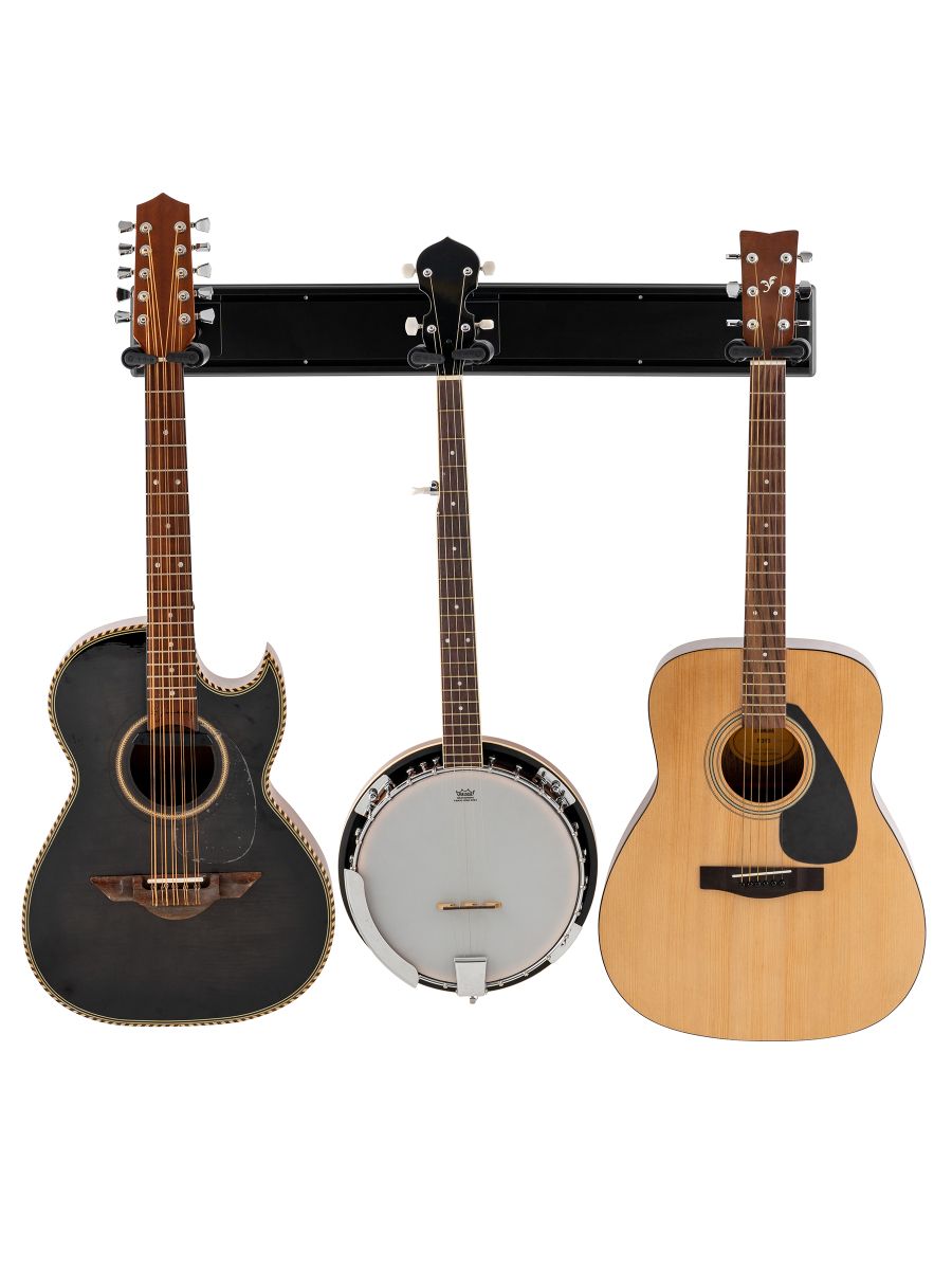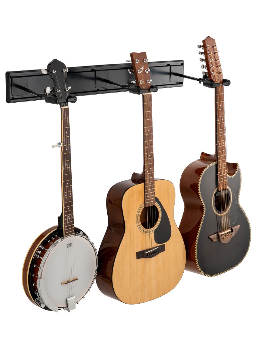 Hercules GSP403SB - настенная панель с крючками для трех гитар разработана для музыкантов, которым требуется надежное и удобное решение для хранения гитар. Она оснащена тремя поворотными крючками AGS Yoke с автоповоротом, которые надежно фиксируют инструменты. Крючки регулируются по углу наклона и подходят для грифа шириной 40–52 мм. Конструкция панели позволяет расширять систему хранения, а регулируемое расстояние между крючками делает её подходящей для инструментов разных размеров, обеспечивая оптимальную защиту и демонстрацию ваших гитар. В комплект входят две настенные панели и три настенных крючка GSP40SB Plus с длинными ручками и адаптерами N.I.N.A. Пользователи могут легко добавлять новые наборы по мере роста своей коллекции гитар, комбинируя их с другими.