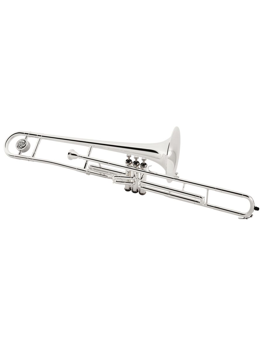 Серия: 700 Строй: C Раструб: 203 мм Мензура: 12,25 мм Корпус: латунь Кулиса и вентили: мельхиор Покрытие: посеребренный В комплекте: жесткий кейс JKC-TB36BA