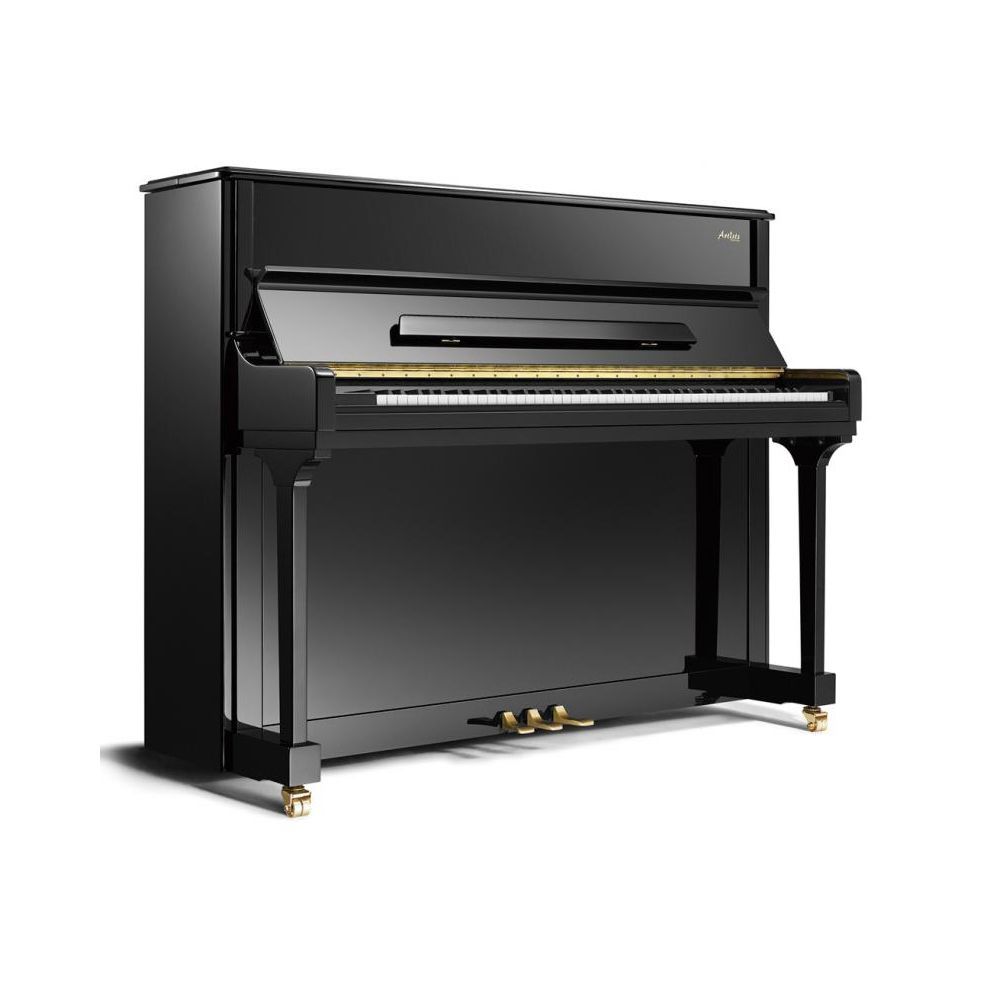 Серия: Artist Размеры (ВхШхГ), мм: 1215x1518x626 Цвет и отделка: черное полированное В комплекте: банкетка Штег: Цельный клен Вирбельбанк и колки: Вирбельбанк сделан из клена, слои расположены перекрестно, хромированные колки с фасками под настроечный ключ Черные клавиши: Эбеновое дерево Струны: Röslau, Германия, ручная намотка Молоточки: Louis Renner премиум класса Дизайн : Lothar Thomma, Германия