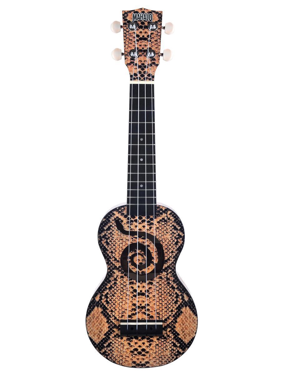 Mahalo MA1PY Укулеле сопрано с чехлом, корпус - липа, гриф - габон, накладка на гриф махагони, струны Aquila Super Nylgut, матовая, рисунок - "питон", серия Art II сопрано