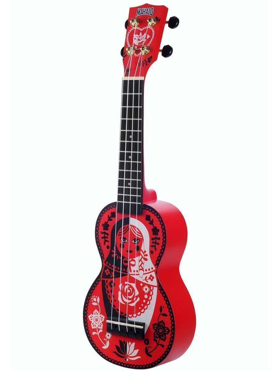 Mahalo MA1RD Укулеле сопрано с чехлом, корпус - липа, гриф - габон, накладка на гриф махагони, струны Aquila Super Nylgut, матовая, рисунок - матрешка, серия Art Soprano