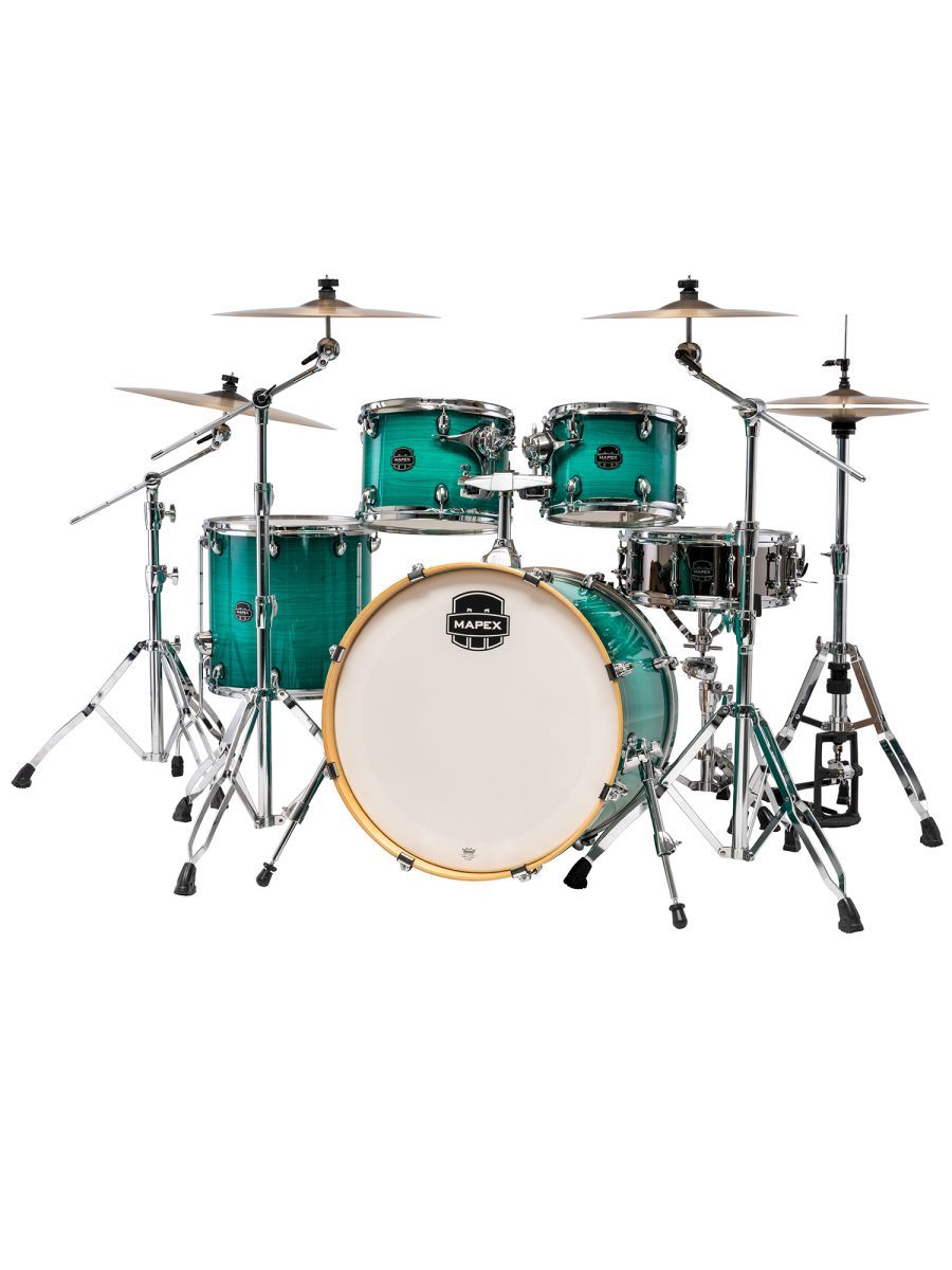 Серия: Armory Корпус: клен/береза, 8 слоев, толщина 7,55 мм Система крепления томов : SONIClear™ Пластики: Remo UC Double-ply Clear Batter, UX Clear Bottom для подвесных томов Remo UT Пластики: Clear Batter head(with dampeningring), UC Coated Reso Head для бас-барабана Ножки напольного тома: SONIClear™ Цвет: Jade Stone Burst * Набор стоек, педаль и стул не включены в комплект. ** Для комплектации ударной установки рекомендуем использовать хардваер Mapex 800 серии или комплект стоек с педалью Mapex HP8005