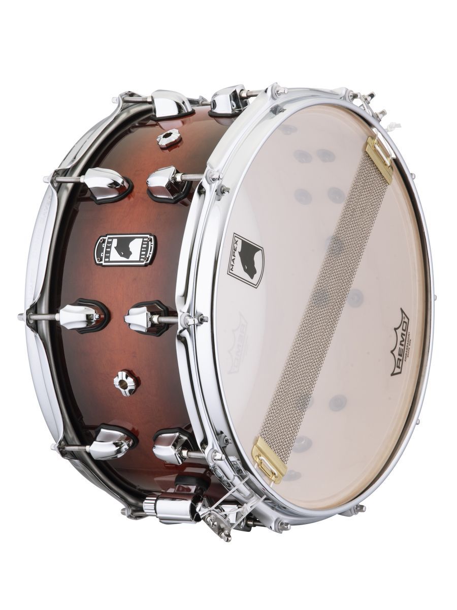 Серия: Black Panther Solidus Размер: 14'' x 7'' Корпус: клен; 5 слоев Фурнитура: хром Ободы: Sonic Saver Цвет: BROWN RED BURST