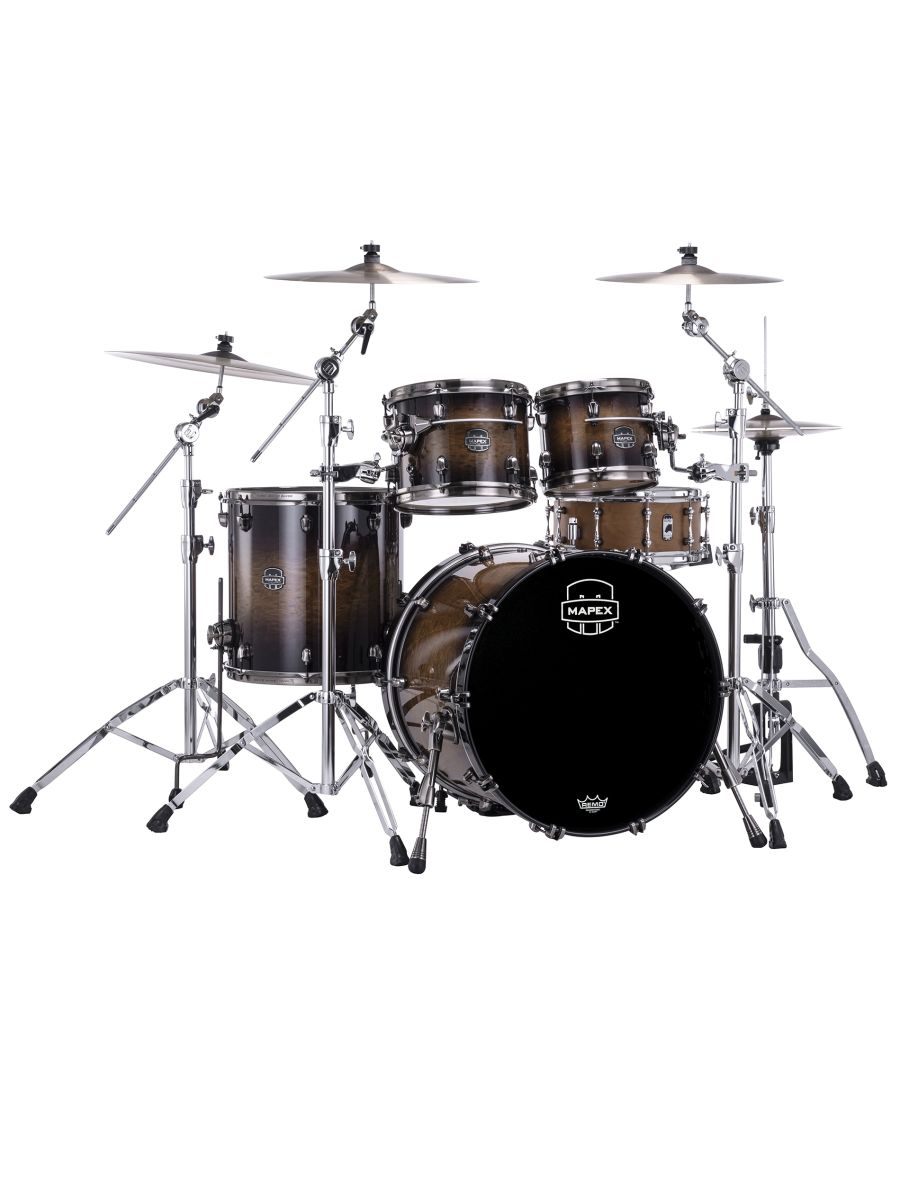 Серия: Saturn Evo Корпус: клен/орех, 8 слоев Система крепления: Halo Фурнитура: черная матовая. Цвет: Exotic Night Forest Burst * Набор стоек, педаль и стул не включены в комплект. ** Для комплектации ударной установки рекомендуем использовать хардваер Mapex 800 серии или комплект стоек с педалью Mapex HP8005