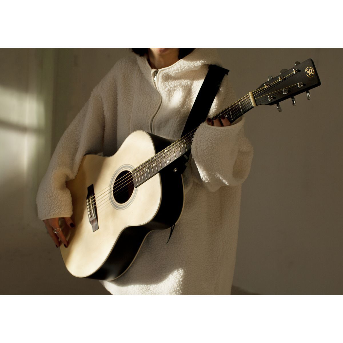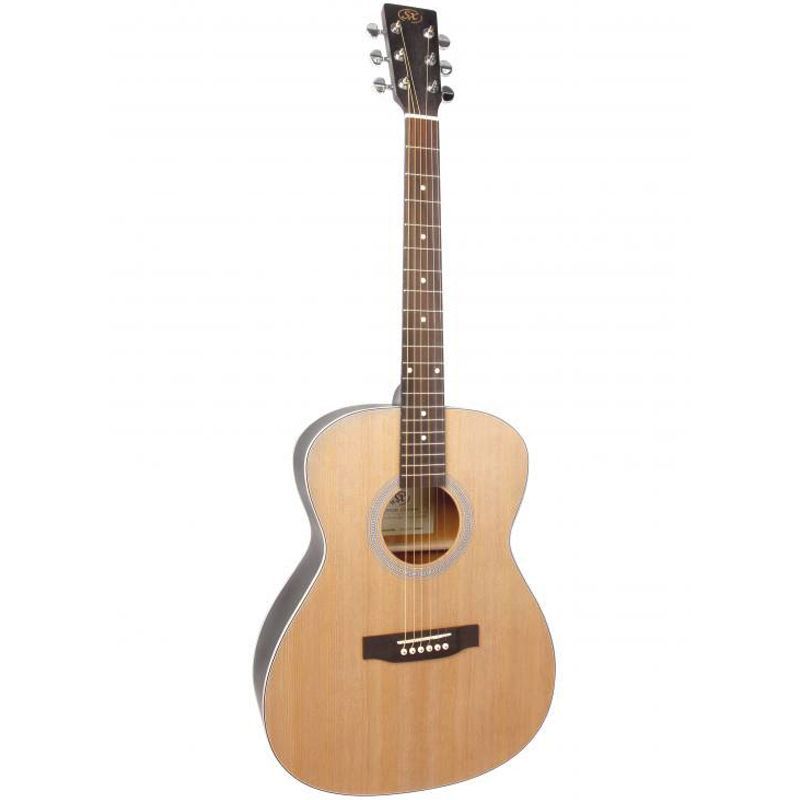 SX SO204TBK Гитара акустическая, верхняя дека ель, нижняя дека и обечайка: агатис, гриф: окуме, накладка грифа и нижний порожек: палисандр, колки: хромированное покрытие, цвет TBK