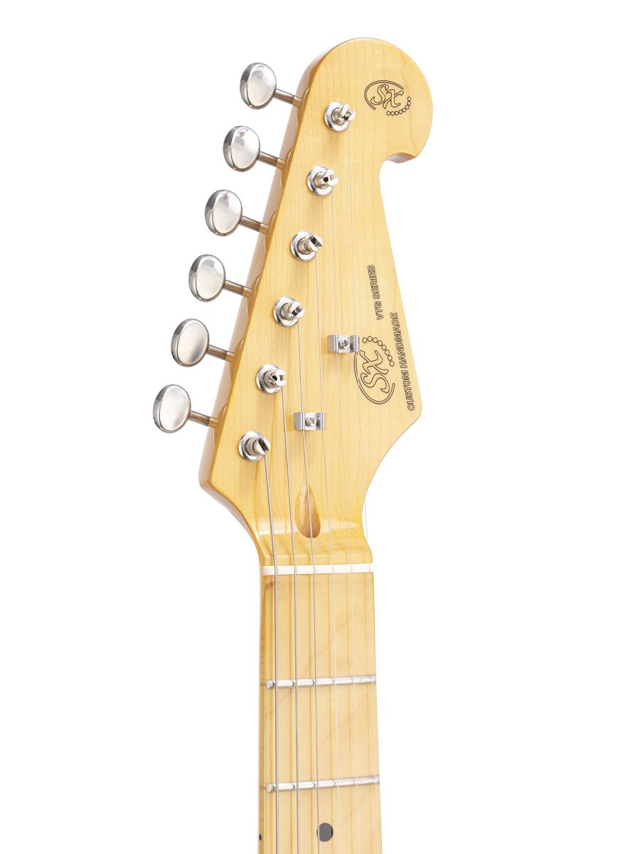 SX SST57+/HSH/VWH представляет собой качественную электрогитару, которая отличается мощным звучанием, высоким качеством сборки и оригинальным дизайном. Бренд SX был создан в 1998 году и за короткий срок заработал отличную репутацию. Все инструменты изготавливаются только из качественных материалов, поэтому продукция бренда отличается не только потрясающим звуком, но и превосходным дизайном. Инструменты SX очень часто используются в студиях звукозаписи, в музыкальных учебных заведениях, а также на концертных площадках разного размера. SX сегодня – это надежность и качество по доступной цене. Корпус гитары выполнен из липы. Прочный гриф и накладка изготовлены из отборного канадского клёна. Инструмент имеет два регулятора тона, один регулятор громкости и 5-позиционный переключатель. Электрогитара SX SST57+/HSH/VWH – это отличный вариант для музыкантов любого уровня.