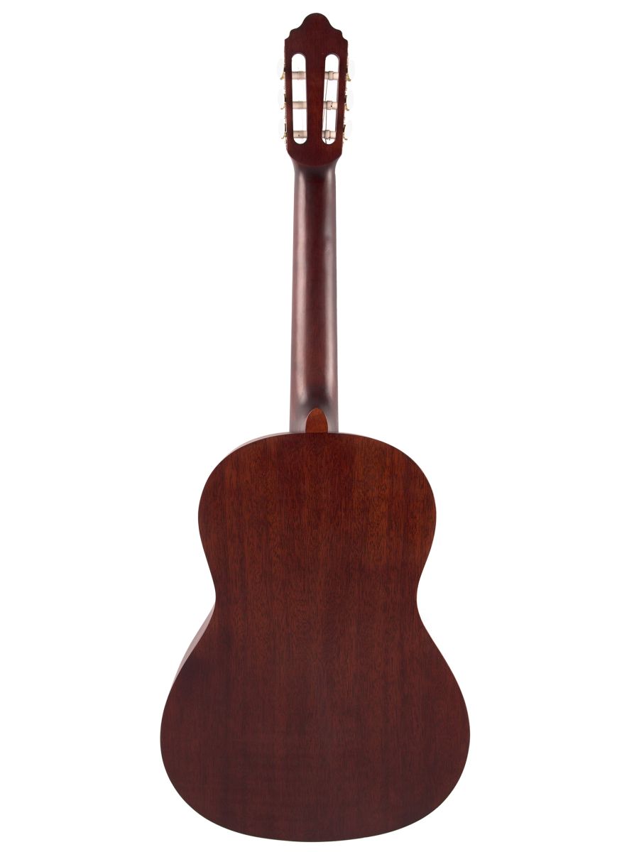 Полноразмерная классическая гитара с узким грифом Valencia VC204HCSB – это идеальный вариант для обучения. Модель разработана для детей от 6 до 11 лет. Инструмент обладает универсальным характером звучания, поэтому подходит для исполнения произведений разных музыкальных жанров. Верхняя дека инструмента изготовлена из ели, нижняя дека и обечайка – из нато. Гриф, накладка и нижний порожек сделаны из махагона. Ширина грифа – 45 мм. Надежная колковая механика прекрасно держит строй и обеспечивает легкость при настройке. Нейлоновые струны, установленные на комфортной для игры высоте, делают гитару удобной даже для самых юных исполнителей. Оригинальное покрытие и матовая отделка корпуса придают особую эффектность Valencia VC204HCSB. Классическая гитара Valencia VC204HCSB сочетает в себе эргономичный дизайн, доступную стоимость и превосходные звуковые характеристики.