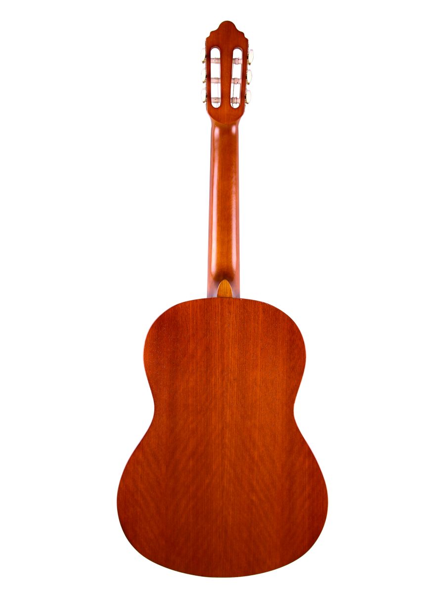 Valencia VC204L – качественная полноразмерная классическая гитара, предназначенная специально для людей, лучше владеющих левой рукой. Модель обладает глубоким звучанием и красочным тембром. Верхняя дека инструмента изготовлена из ели, материал нижней деки и обечайки – нато. Накладка и нижний порожек выполнены из махагона. Гриф из махагони имеет удобную форму и оптимальную ширину. Надежная колковая механика прекрасно держит строй и обеспечивает легкость при настройке. Нейлоновые струны установлены на комфортной для игры высоте. Valencia VC204L подходит как для обучения в музыкальной школе, так и для домашнего музицирования.